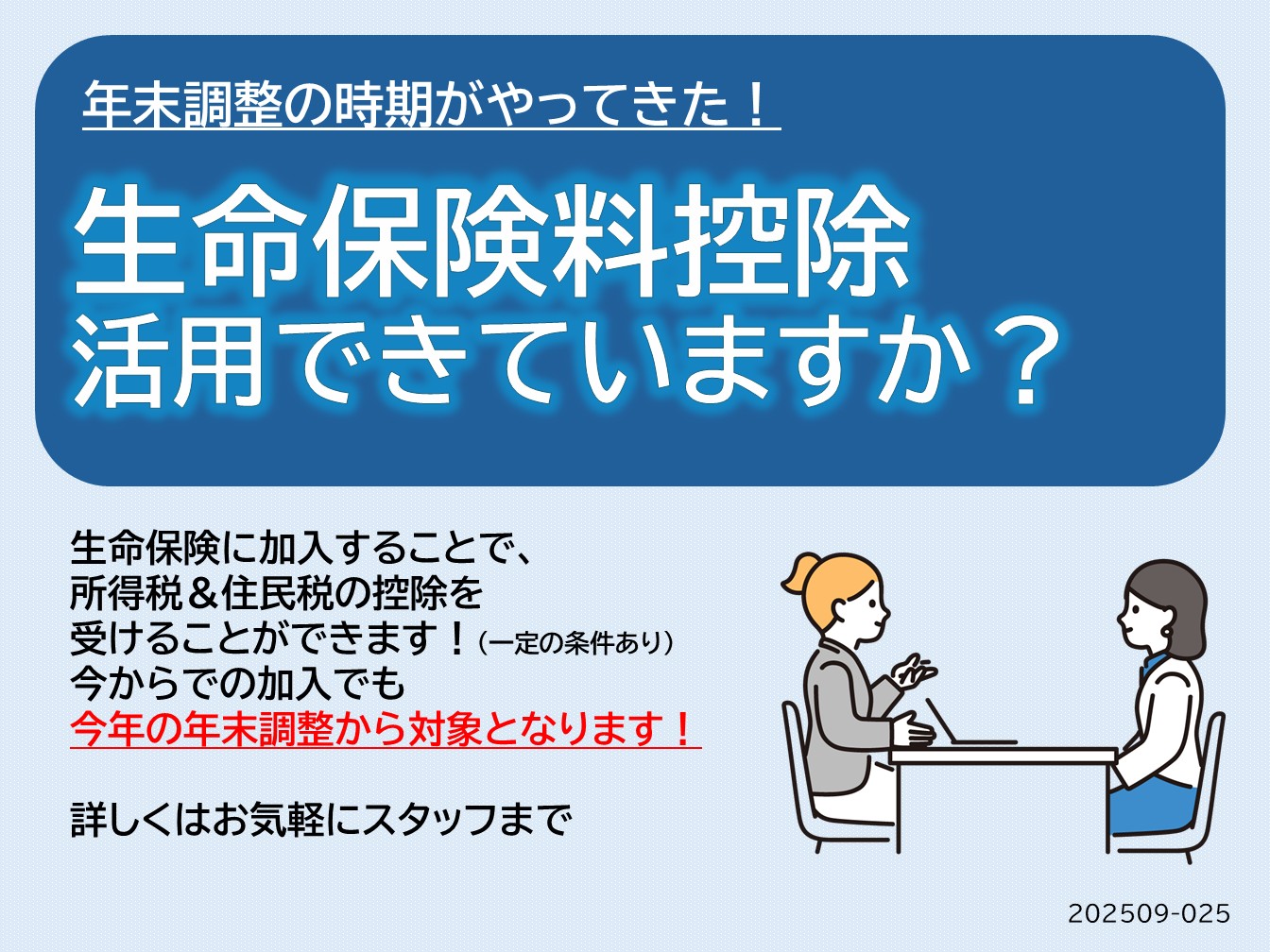 『生命保険料控除』とは、払い込んだ生命保険料に応じて、一定の金額を契約者(保険料負担者)のその年の所得から差し引く制度です。税率を掛ける前の所得が低くなることにより所得税・住民税の負担を減らせます。