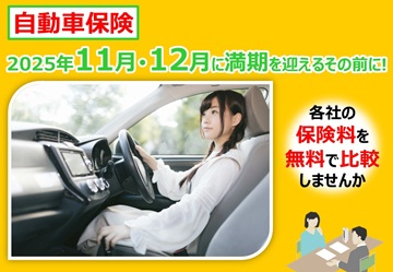 ほけんの相談ショップ・ライフサロン イベント・キャンペーン イベント・キャンペーン 自動車保険そのままで大丈夫?? 2025年11月4日(火)~2025年11月24日(月) ほけんの相談ショップ サンエー大湾シティ店 自動車保険の満期が 11月・12月の方は、そろそろ <満期のご案内> が保険会社から届く頃ですね(*'▽')そのまま更新してしまう前に各社のプランを無料で 比較してみませんかご来店の際は、下記ご持参ください。・満期のご案内 ・保険証券・車検証 ・免許証※自賠責保険は、取扱いございません。ご了承下さい。 店舗ページはこちらから 保険の無料相談のご予約はこちら