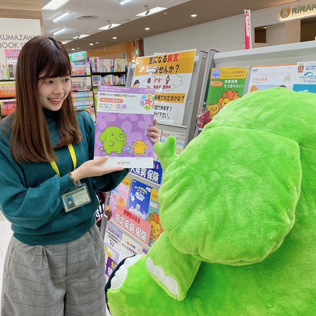 | 取扱商品 | (生命保険) 医療保険、がん保険、個人年金保険、学資保険、介護保険、収入保障保険、外貨建保険、就業不能保険、変額保険、終身保険、定期保険、養老保険 (損害保険) 自動車保険、自転車保険、火災保険、傷害保険、企業賠償責任保険、業務災害補償保険、ペット保険 |