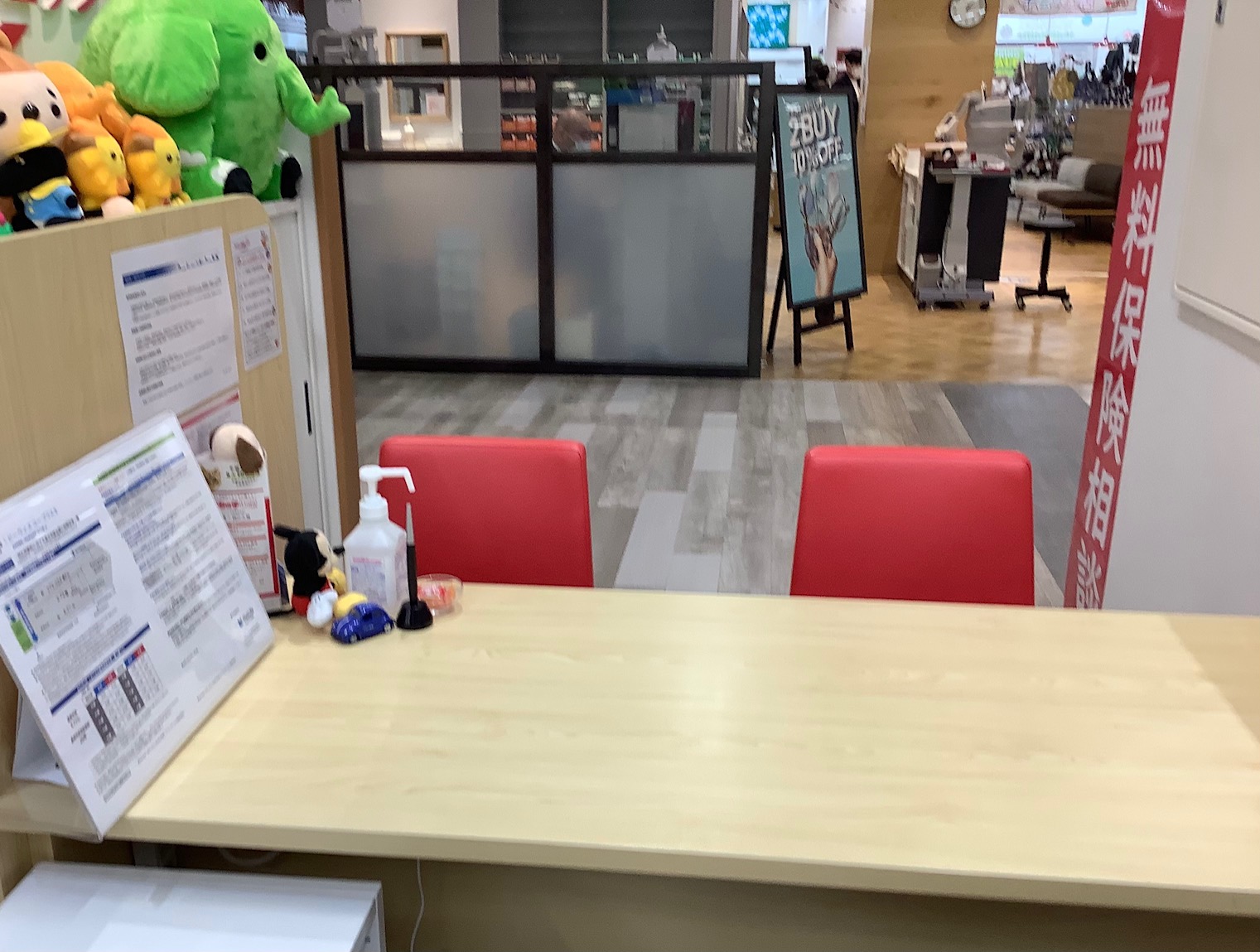 明るい照明とパーテーションでご相談しやすい環境づくりを行っております。消毒液の設置もありますので、ご安心いただいています。