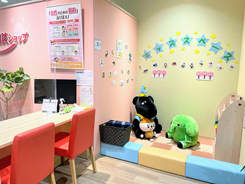 ご相談スペースのすぐそばにお子様のキッズスペースがございます♪同フロアの赤ちゃんルームもご利用いただけます☆