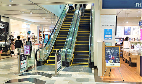 つきあたりに時計屋さんとエスカレーターがありますので、左側へお進みください。
