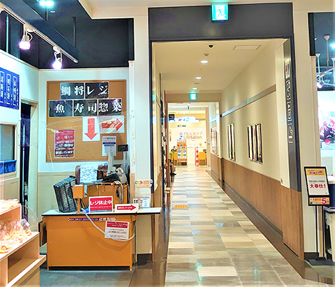 フードコードを通り抜けて頂くとお手洗いに続く通路がありますので、そちらを通り抜けて頂けばライフサロンに到着です!