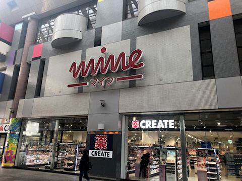 にしこくマイン3階。エスカレーターを降りて、すぐ左手に出店しております。