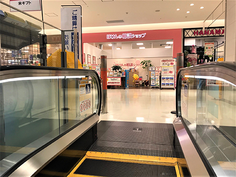 食品館レジ、フラワーショップ「はなまさ」さん隣