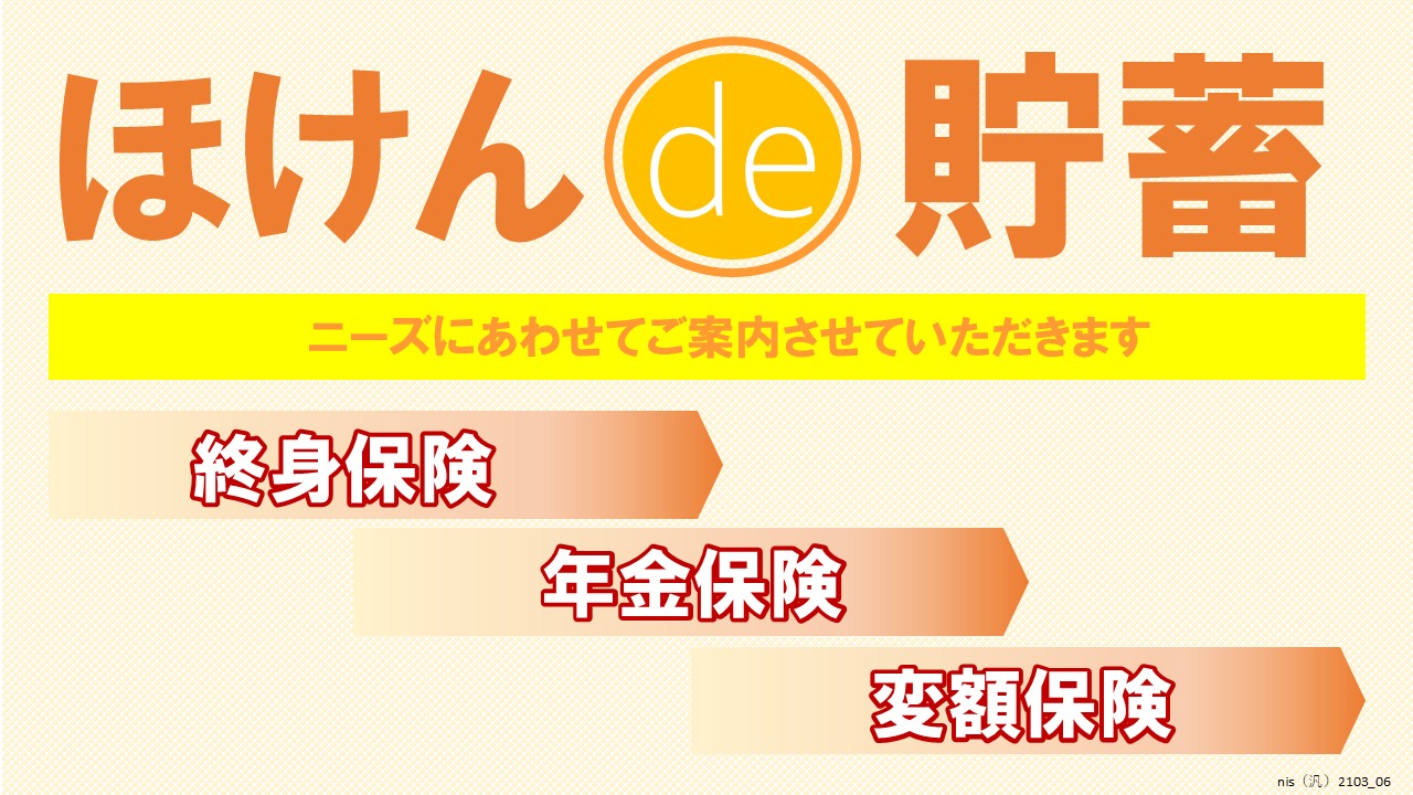 | 取扱商品 | (生命保険) 医療保険、がん保険、個人年金保険、学資保険、介護保険、収入保障保険、外貨建保険、就業不能保険、変額保険、終身保険、定期保険、養老保険 (損害保険) 自動車保険、自転車保険、火災保険、傷害保険、企業賠償責任保険、業務災害補償保険、ペット保険 |
