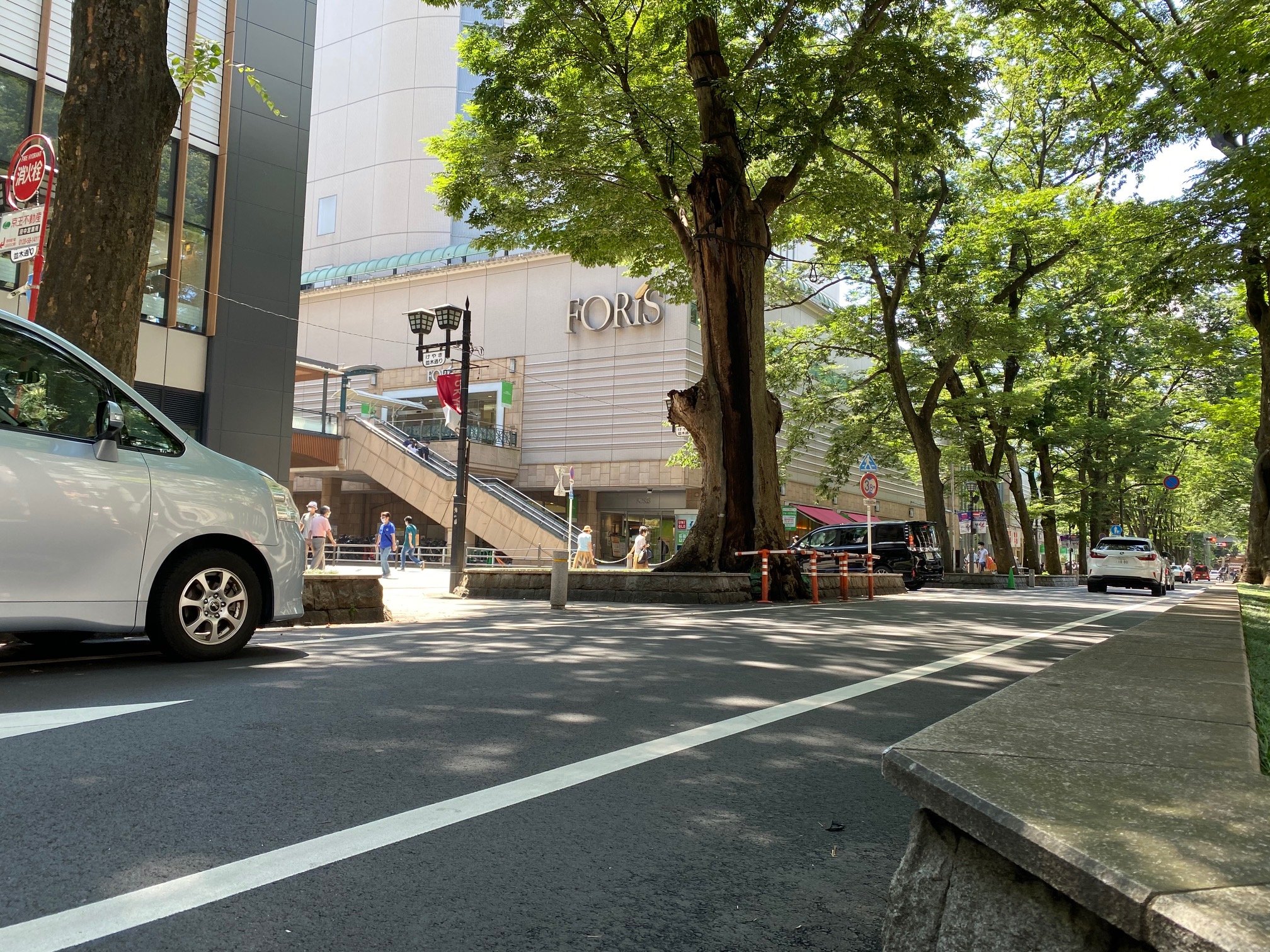 けやき並木通りから、フォーリス(FORIS)手前を左折してください。